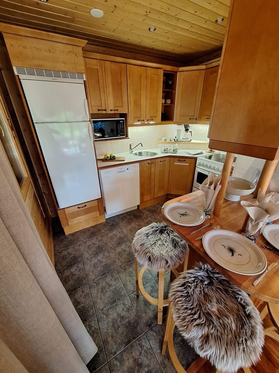 Günstige Unterkunft für den ersten Schnee, den Weltcup in Levi und Januar/Februar. Beheizter Skiraum in Betrieb. Kürzere Aufenthalte auf Anfrage.