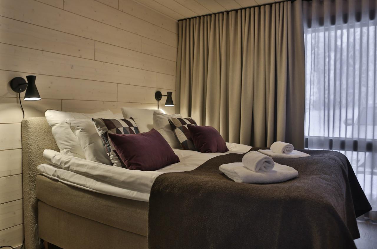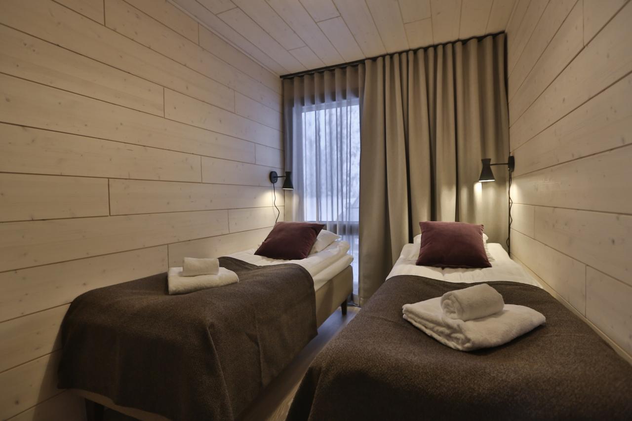 Huvilan pohjakerroksessa on kaksi makuuhuonetta: toisessa parivuode ja toisessa kaksi erillistä sänkyä, mikä tekee pohjaratkaisusta erityisen sopivan perheille ja ystäväporukoille. Parvi lisää joustavuutta ja tilaa toimien täydellisesti lisämakuutilana tai rauhallisena lukunurkkauksena, josta on ihanat näkymät Lapin luontoon.