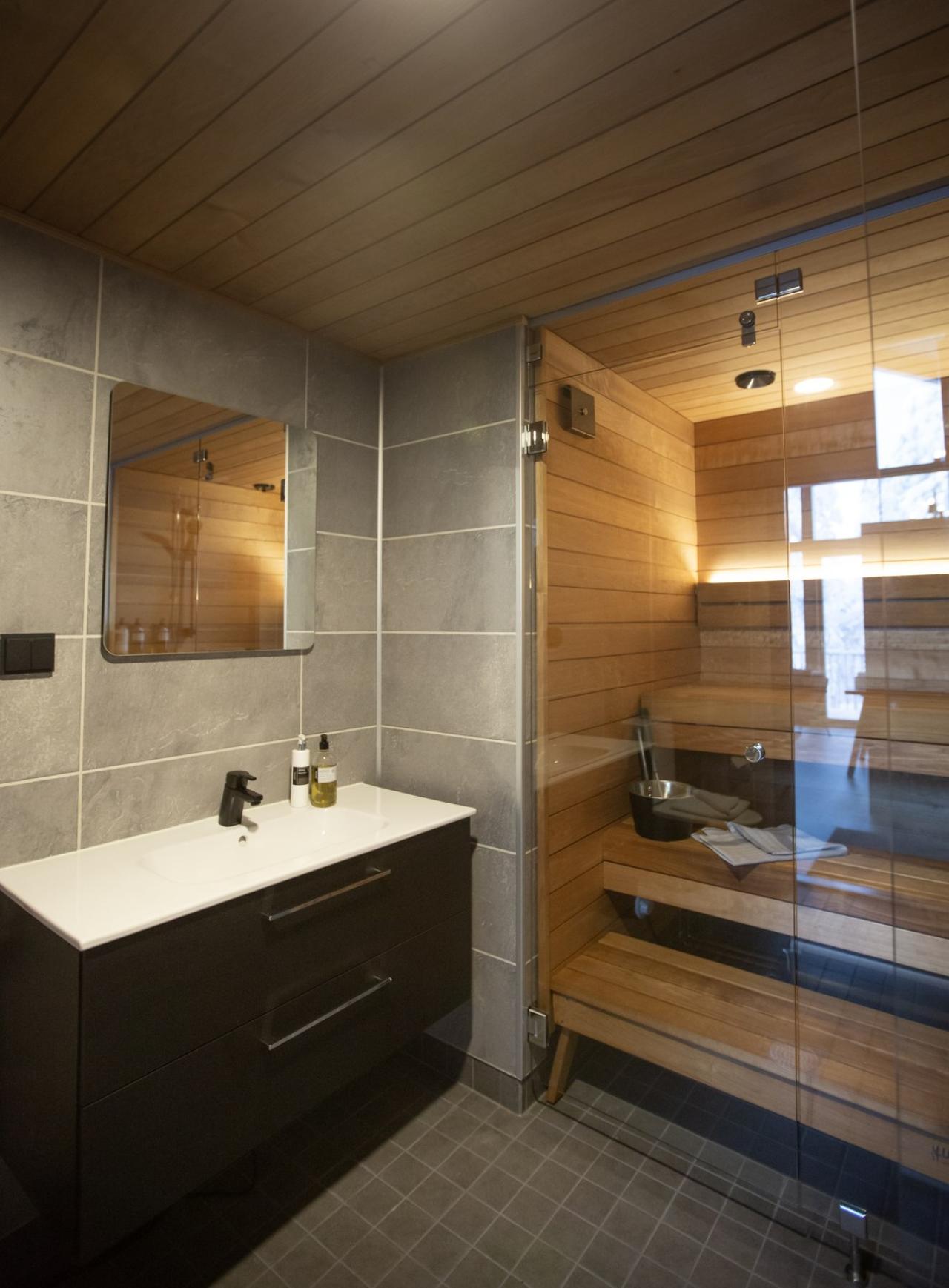 •  Kylpyhuone, jossa suihku, wc ja sauna