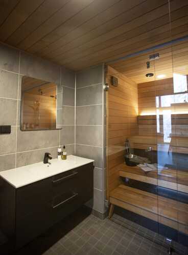 Sisällä avoin olohuone-keittiö luo lämpimän ja kutsuvan tilan rentoutumiseen, ruokailuun ja laatuajan viettoon yhdessä. Käytettävissäsi on myös oma sauna, jossa on kylpyhuone suihkulla ja wc:llä, sekä erillinen WC, mikä tekee huvilasta erityisen mukavan perheille ja ryhmille. Terassi kutsuu sinut nauttimaan aamukahvista tai auringonlaskuista.